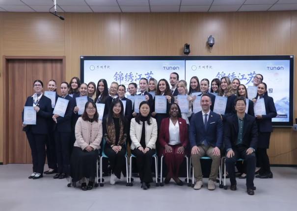 从凤城河景区到溱湖湿地,从金东门历史文化街区到李中水上森林公园……在六天的深度参与交流中,旅游管理专业学生全程担任讲解员,以出色的专业素养和跨文化沟通能力,向法国师生生动地展现了泰州深厚的历史文化底蕴和优美的自然风光。此外,我院旅游管理专业教师樊莹、宋欢、王慧三位教师也为法国学生精心开设了《中国礼仪文化》《中餐服务》《中式客房服务》主题讲座与实训课堂,搭建了良好的专业交流与实践平台。