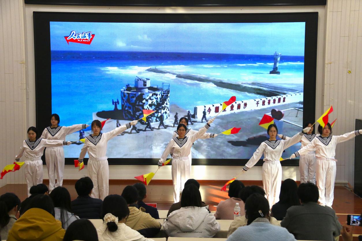 本次道德讲堂设“作省身、诵诗歌、讲故事、做互动、看短片、观表演、送祝福”七个环节。开场“省身三问”凝聚起师生传承红色革命精神的共识。《山河作答》散文诗朗诵情感饱满、字字铿锵,抒发了对家国山河的热爱。双人情景演讲《凤城红脉,薪火长燃》聚焦本土红色记忆,让英烈精神永续相传。海军旗语操表演整齐划一、刚劲有力,师生在互动体验中感受海军军魂。随后,现场师生观看短片,学习杨延修同志不忘初心、对党忠诚的崇高精神。“星辰大海”手语表演则以无声的肢体语言传递炽热情感,体现了科技强国青春向党的情怀。活动尾声,现场师生拿起红色卡纸,将对祖国的美好祝福、对时代的使命担当认真书下,折成寓意希望与力量的飞鸟,激励广大师生以更加昂扬的姿态为中国梦贡献力量。(王兆凯)